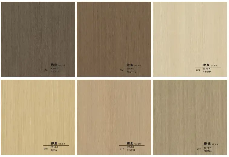 السُمك: السمك الشائع للتصفيح الصناعي هو 0.3 مم - 0.6 مم. يحتاج فيلم الحبوب الخشبية المزخرفة لجدار الخزانة إلى سمك وصباقة كافية للتكيف مع الفراغ الذي يتشكل دون تكسير.